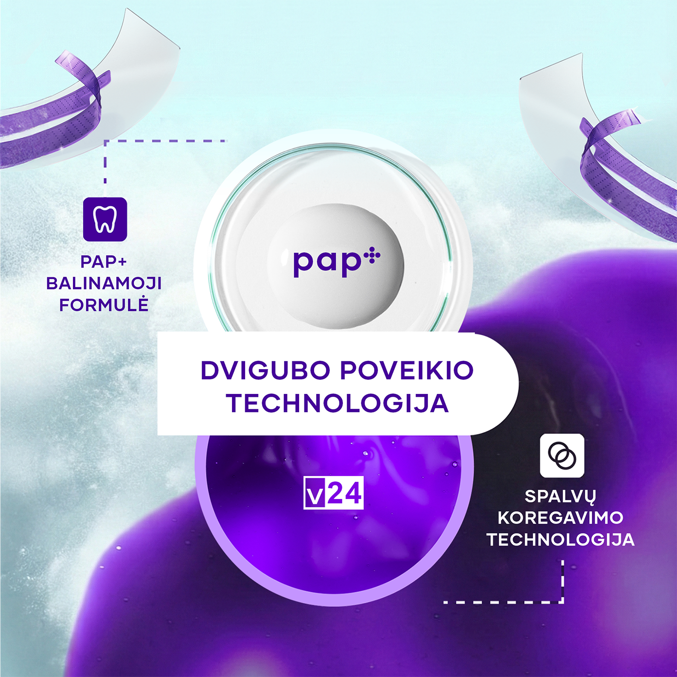 Vietoje agresyvaus peroksido šios juostelės naudoja pažangią PAP+ ir V24 spalvų korekcijos technologiją. Šis galingas derinys ne tik saugiai balina, nesukeldamas jokio jautrumo, bet ir akimirksniu neutralizuoja geltonumą suteikdamas profesionalūs rezultatatus jau po pirmo naudojimo.